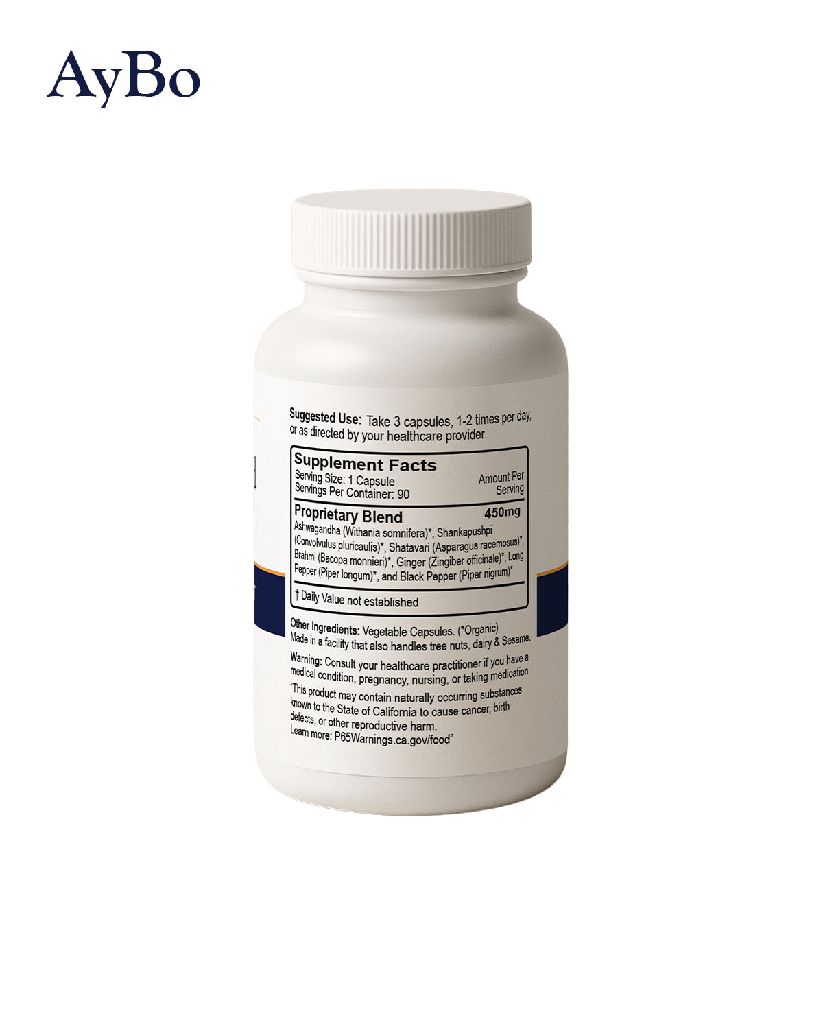 Ashwagandha (Withania somnifera), Shankapushpi (Convolvulus pluricaulis), Shatavari (Asparagus racemosus), Brahmi (Bacopa monnieri), Ginger (Zingiber officinale), Long Pepper (Piper longum), and Black Pepper (Piper nigrum)